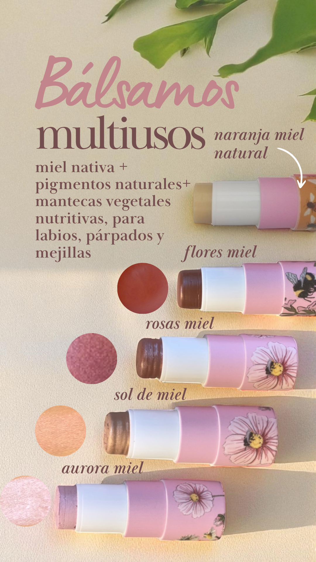 Bálsamos nutritivos para labios, ojos y mejillas con colores inspirados en la tierra.